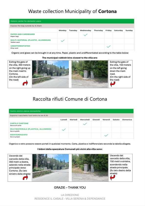 GARDAGE BIN Welcome toVilla Serena & Dependance Where to throw the garbage To dispose of your rubbish, please follow the information below